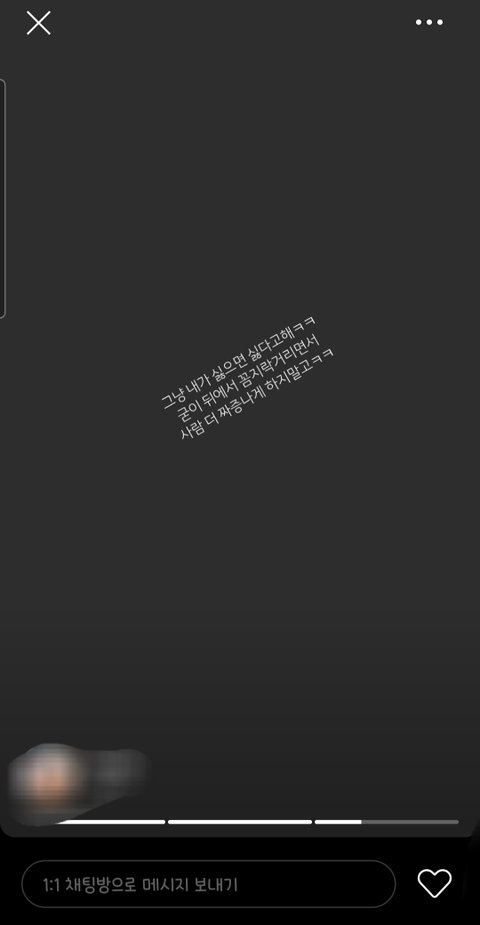 "그냥 내가 싫으면 싫다고 해 ㅋㅋ 굳이 뒤에서 꼼지락 거리면서 사람 더 짜증나게 하지말고 ㅋ ㅋ"
