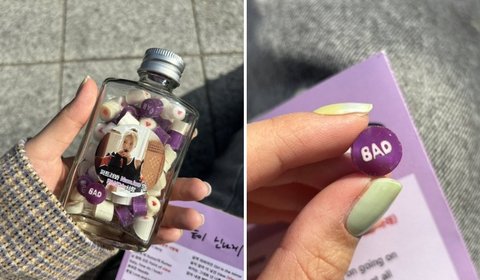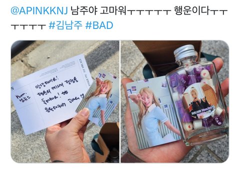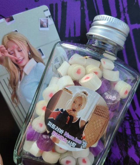 사탕은 그냥 사탕 아니고 이번 노래 제목인 BAD 써있는 의미 있는 사탕..♡