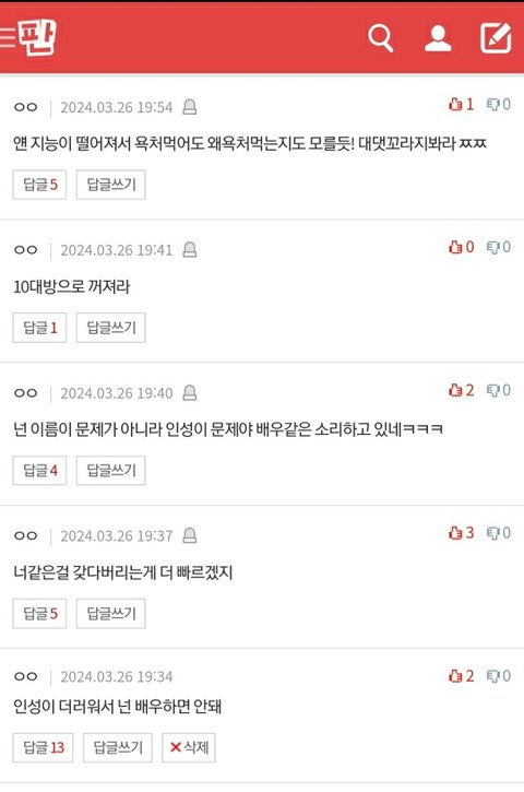 욕을 들었어요 그리고 제가 배우가 꿈이라