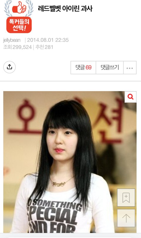 밑댓 ㅋㅋㅋ 아이린 사진 조작한 판녀인가 보네 이게 2014년도 원본인데 ㅋㅋㅋ 대칭눈 놔두고 오른쪽이 작은 짝짝이 눈이 원본이라고 헛소리 지껄이는거 보면