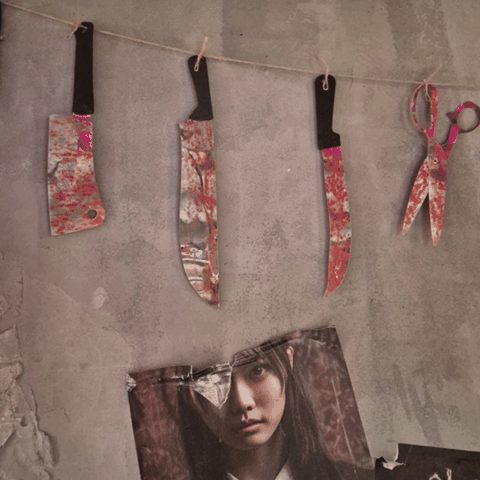 내부터 피 튀긴 듯한 인테리어로 공포스럽게 꾸며져 있어서