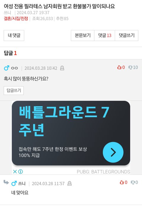 23년 11월부터 집 근처 여성 전용 필라테스를 찾아서 다니게 되었는데 이번에 갑자기 대표가 바뀌면서 사전 동의 없이 여성전용에서 남성도 받는다고 말로 얘기하길래 복장도 좀 그렇구 애초에 여성 전용이 좋아서 계약한거라 환불해달라고 했더니 환불이 불가능하다고 말을하네요.