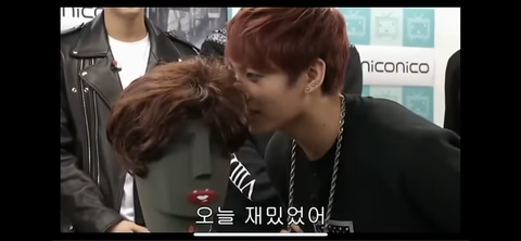 일본 방송 같은 곳에서 사람 머리처럼 생겼는데 귀도 달린 마이크에 대고 막 좀 설레는 문장 같은 거 말했던 거… 한 상남자 때였던 것 같은데!! 정국이가 오늘 재밌었어 내일 또 봐? 이런 말 일본어로 했던 거 예전에 봤는데 지금 찾으니까 도저히 안 나와서 ㅜㅜ 물어봐 혹시 뭐였는지 아는 사람…