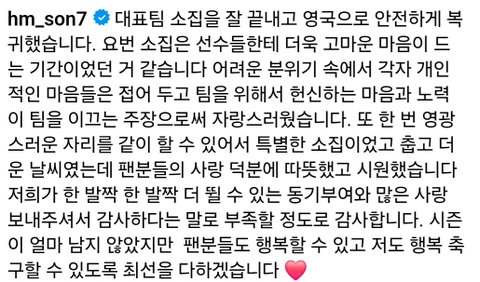 손흥민 인스타그램