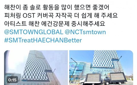 스엠이 해찬스케를 뺏어서 ㅊㄹ줬다 이게 해찬팬들 논리인데..뺏어갔다고 우기는거자체도 이해불가능이지만 이미 ㅊㄹ가 보컬실력으로 해찬 한참 앞지르고도남은 마당에 뭐가 자랑이라고 멤버들 출근하면서 다 보게 트럭세워놓는지 모르겠음그룹 두개나 하는데 솔로활동 많이 시키라면서 또 동시에 건강은 지켜달라??그럼 그룹을 나가고 솔로를 하면될듯