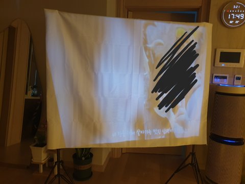 - 구김이 잔뜩 가있는 얇고 허접한 천 쪼가리 빔스크린.
