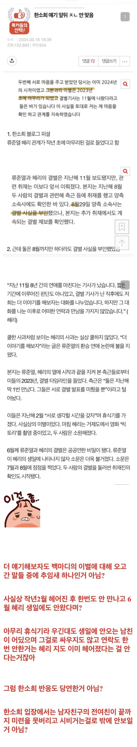 류준열이 ㄹㅇ 비겁한게 헤어진 사유라도 똑바로 얘기하던가 전 남친(?)에게 벗어나 예쁘고 여성스러운 진짜 여자랑 사귀고 싶었다고 대놓고 말할 용기가 없나? 차라리 2013년에 막 20살 된 혜리랑 16세연하 여돌이라고 좋다고 사겼다가 급하게 바로 탈주한 78년생 토니안처럼 류준열도 진작에 토니안처럼 사귀자마자 바로 탈주를 했었어야지