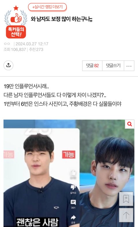 남자들도 보정많이하는구나…