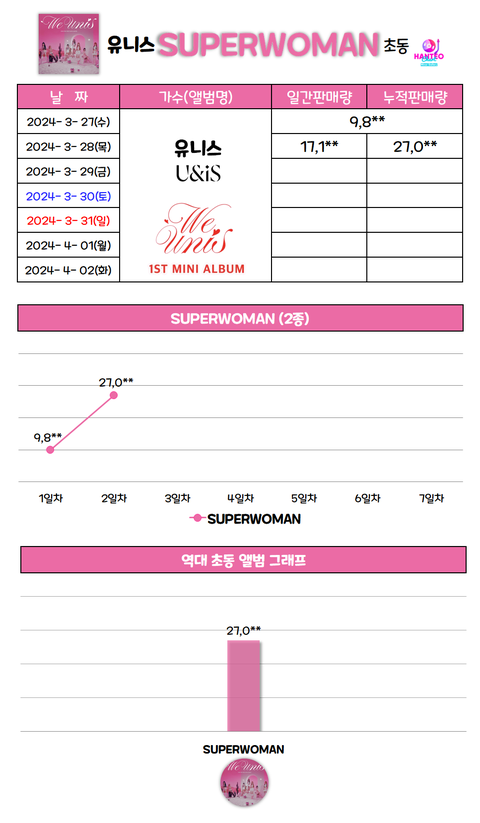 유니스 [SUPERWOMAN] 초동 2일차 종료