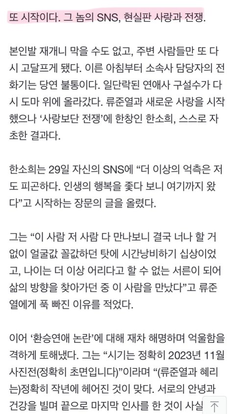 여자가 저러는거 남자가 입꾹닫했을 가능성이 농후해보인다 답답한데 정확히 말도 안해주고 말 꺼내면 질리는 여자로 치부해버려서 돌아버리는 상황이고 난 환승한거 아니라고 주변 사람한테 열심히 설명했지만 나랑 친한 몇 빼고는 추측대로 소문만 이상하게 나서 또 돌아버리고; 그냥 내 경험을 근거로 한 뇌피셜임 하지만 아무리 그래도 전여친 저격하는건... 개인도 그거 감당하기 힘든데 대중 상대로 선전포고처럼 공표해버리면 어떡하니...뒷수습 어떻게 하려고