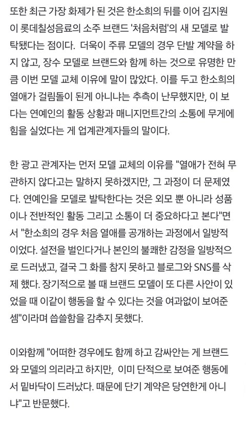 관계자 피셜 ‘처음처럼' 한소희 모델 교체의 이유