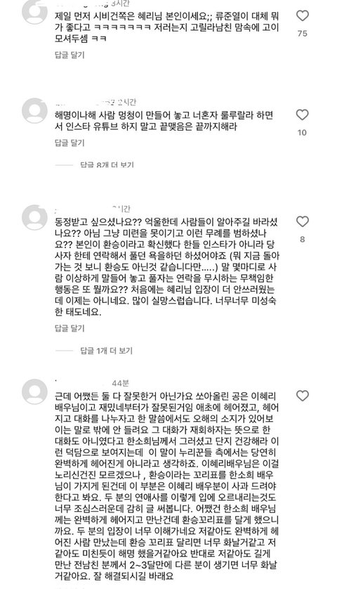 혜리가 얼마나 더 입장문을 내야함? 재밌네 올린 이유도 말했고 헤어진 시기도 말했고 자신의 행동으로 피해입은 분에게도 사과 했는데 혜리 좀 그만 패