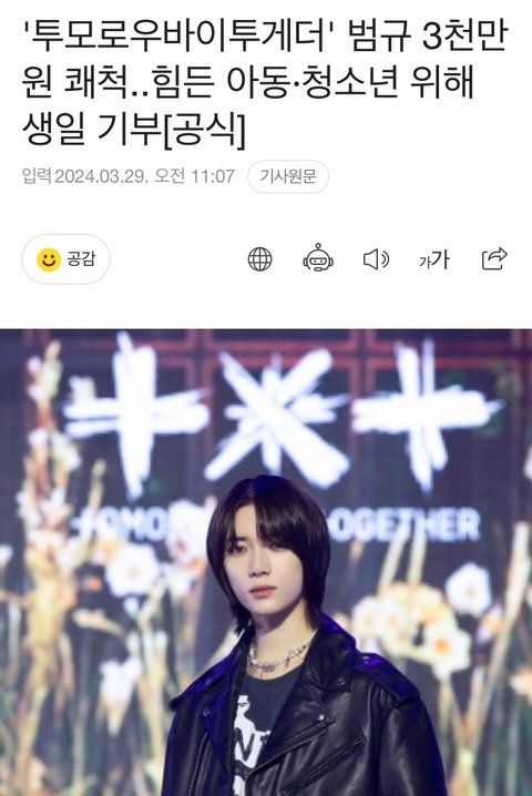 투바투 범규 본인 생일 기념으로 3000만원 기부했대