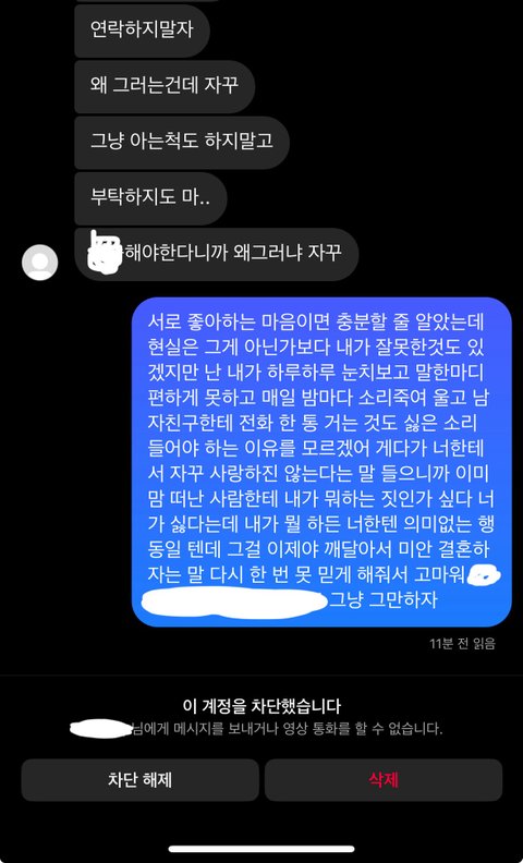 헤어질까 했던 글쓰니 헤어졌다