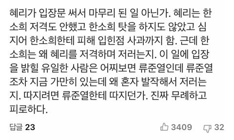괜히 아무잘못없는 한소희만 지금 개쳐맞고
