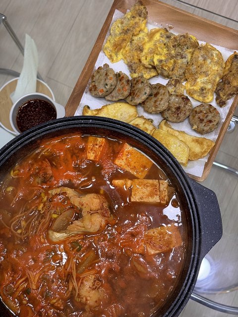 개인 취향에 맞게 두부, 콩나물, 버섯, 미나리, 쑥갓 등 올려서 끓여 주시면 완성!