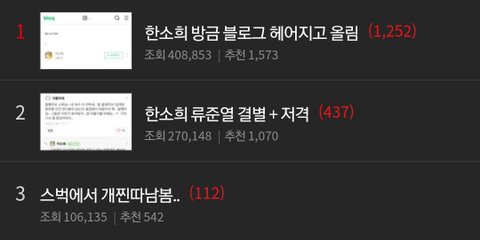 +)아 이게 한소희글이랑 비슷한 조회수라고?