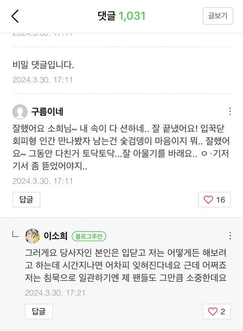 실시간 한소희가 댓글 달음