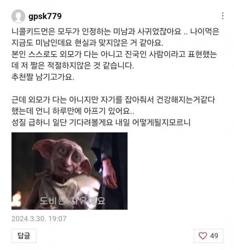 그냥... 진짜 전체적으로 너무 급발진을 자주해서 깸;;이렇게 빨리 헤어질거면 처음부터 환승이란거 알자마자 바로 손절치던가, 아니면 이렇게 오징어지킴이로 이왕 된거면 세기의 사랑으로 지조있는 이미지라도 가져가던가 뭐냐고 ㅜㅠ