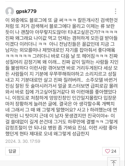 지 글도 ㅈㄴ 장황한거 모르나ㅋㅋㅋㅋ 했던 말 반복반복 어휴