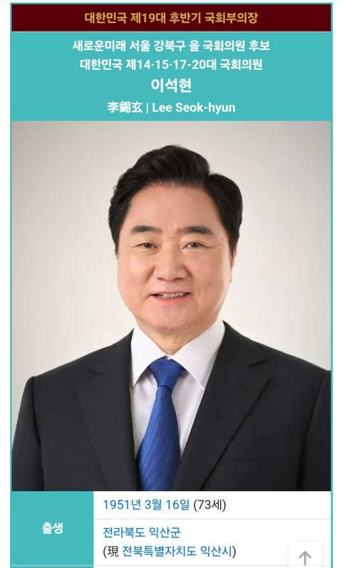 (사진3~4 설명) 이석현(李錫玄, Lee Seok-hyun) 새로운미래 서울 강북구 을 국회의원 후보/대한민국 제14·15·17-20대 국회의원 <출처 : NAVER 나무위키>