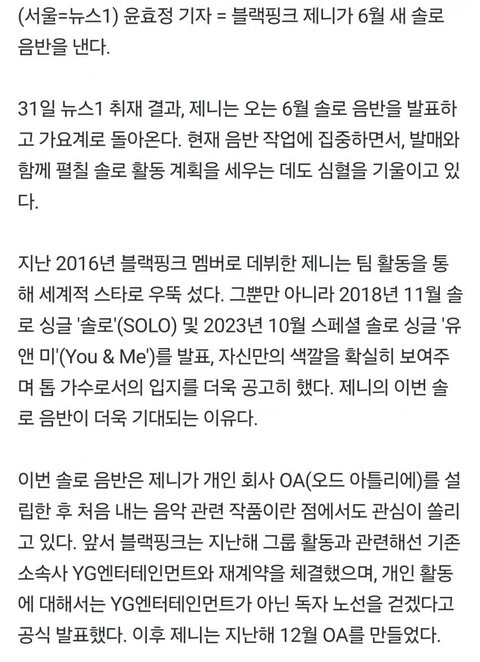 로제도 곧 나올삘이던데 연달아 나오는게 가능해졌네 와지소속이 아니니