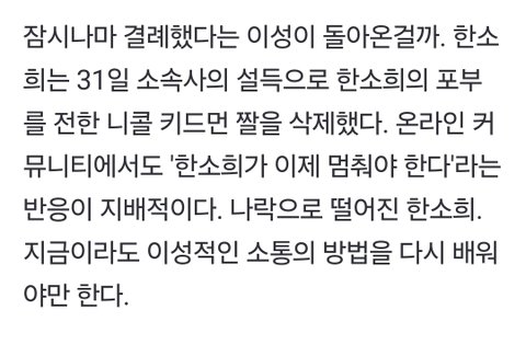 한소희는 31일 소속사의 설득으로 한소희의 포부를 전한 니콜 키드먼 짤을 삭제했다.