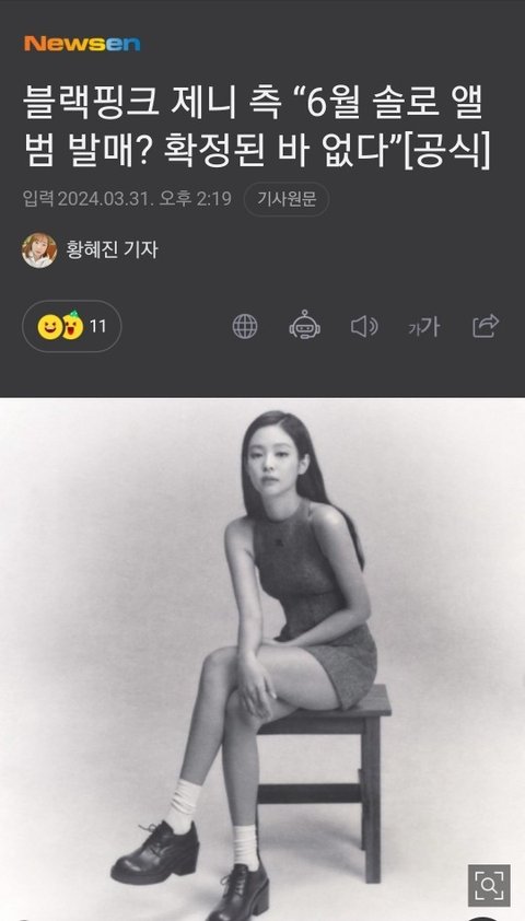 제니 솔로 컴백 단독 취재 결과라면서 기레기가 또 구라친거였구나.. 어쩐지 일요일에 단독 기사 하나 이상하긴했음... 제니 컴백 조용히 기다려야징