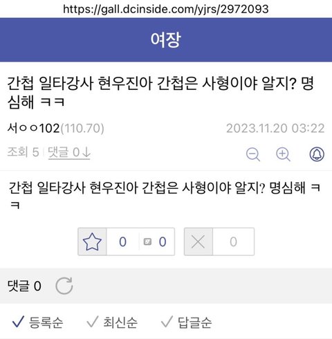 간첩 현우진의 경우 여장갤러리내에서도 대놓고 간첩이라고