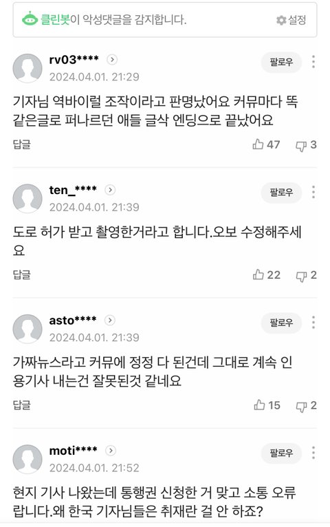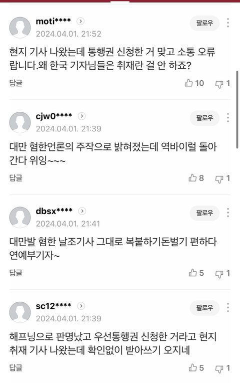대만 찌라시 기자가 올린 허위사실이래