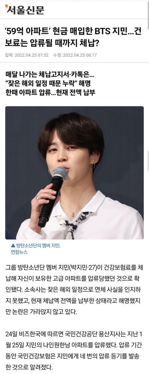 건보료 체납 11개월 + 압류등기 4번 + 59억 아파트 압류