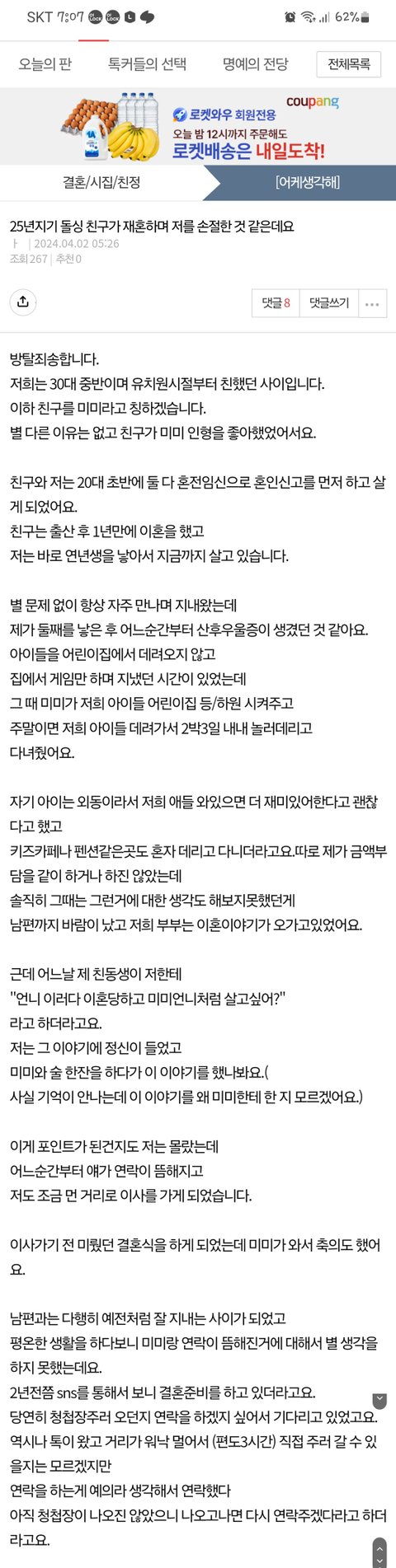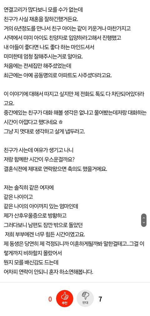 [원글지킴] 25년지기 돌싱친구가 재혼하면서 저를 손절