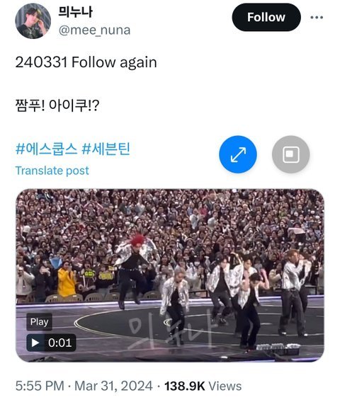 콘서트 보기는 함? 내가 막콘 2층 중앙에서 똑똑히 봤다 참여 못하는 곡이 대다수였고 애초에 처음부터 소속사 공지에 제한적 참여라고 했었고 쿱스가 본인 못나오는곡도 있고 참여하는 곡도 있다고 얘기하고 시작했음 완곡한건 그나마 단체곡보다 덜 빡센 춤 많이 없는 힙합팀 곡 세곡에 발라드 단체곡 앵콜곡 두세개가 다였다ㅋㅋ...그나마 참여하는 곡은 본인 파트 랩/노래한게 다였고 본인파트에만 춤추고 그나마 좀 많이 하는 곡은 안무 제대로 못하고 멤버들 뒤에서 댄서분들이랑 간단한 춤만 추거나 옆 계단으로 내려가서 잠시 퇴장하는 경우가 대다수였음 점프 동작도 다른 멤버들보다 눈에 띌만큼 낮았고 그 점프동작할때도 무릎 제대로 구부리지도 못하더라 심지어 무대 후반부로 갈수록 힘들어했고 절뚝이는거 다보였고 엔딩 멘트때문에 앉아있을때도 무릎 불편했는지 계속 만지고 구부리면서 운동했음 안그래도 팬들보고싶다고 8개월동안 무대 못하고 재활만 한 애고 아직도 다 못 낫고 아파해서 마음아픈데 ㅈㄹ하지마라 8개월동안 무대 못하다 처음으로 복귀해서 잠깐씩 무대한게 이번 인천콘이었다^^