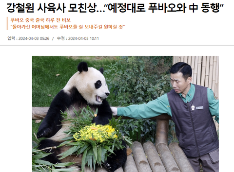 그럼에도 강 사육사는 예정대로 푸바오와 중국행을 동행하기로 알려졌어