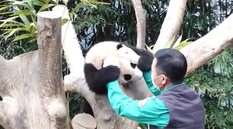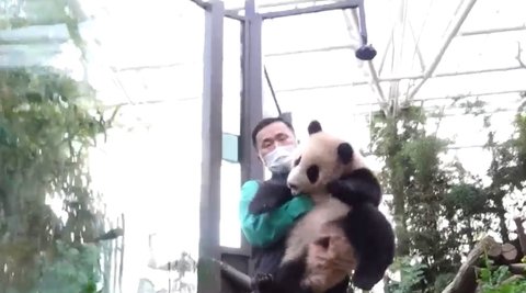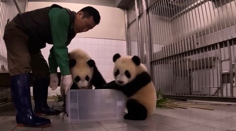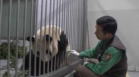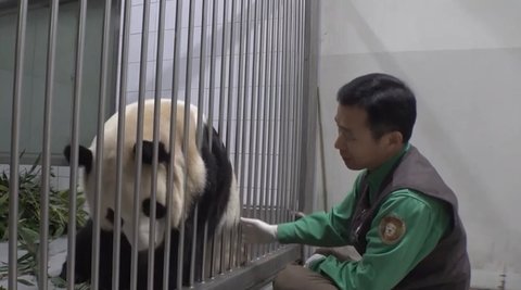 강철원 사육사와 송영관 사육사가 푸바오를 대신해