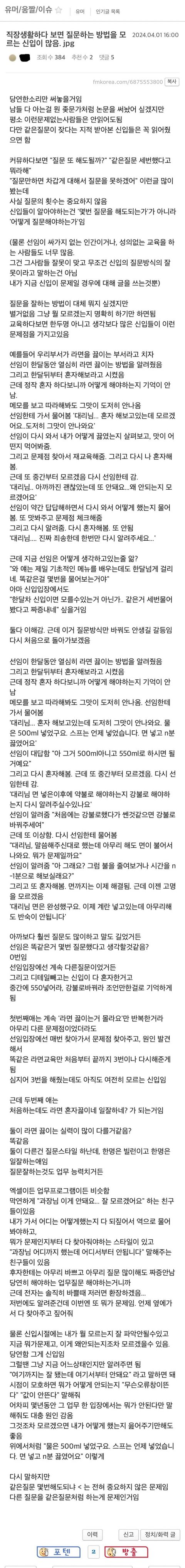 직장생활하다 보면 질문하는 방법을 모르는 신입이 많음