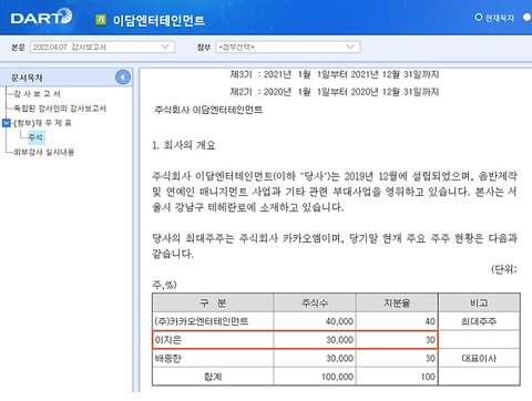 아이유회사의 3대주주가 아이유임 아이유도 논란에서 자유로울 수가 없음