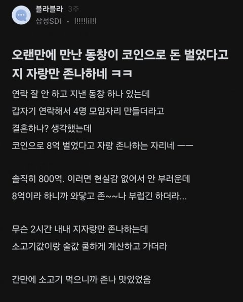 코인으로 8억딴 동창이 갑자기 연락해서 자랑만 x나한다