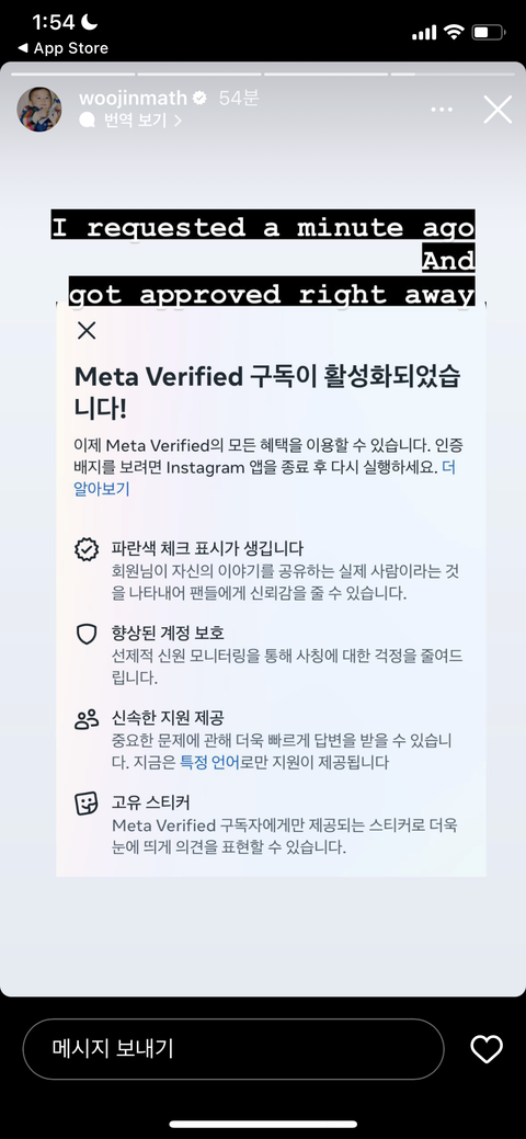 몇 분전에 요구했는데 바로 됐다고 하누