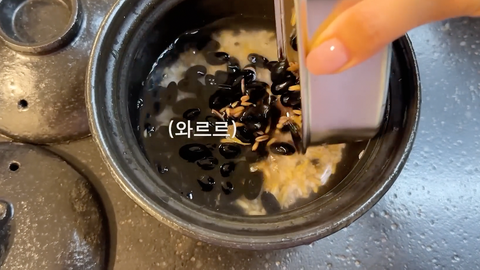 어제 불려둔 콩 넣어 솥밥 지어먹기