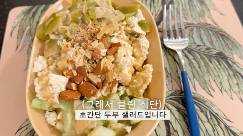 셋째날 아침은 두부와 토마토