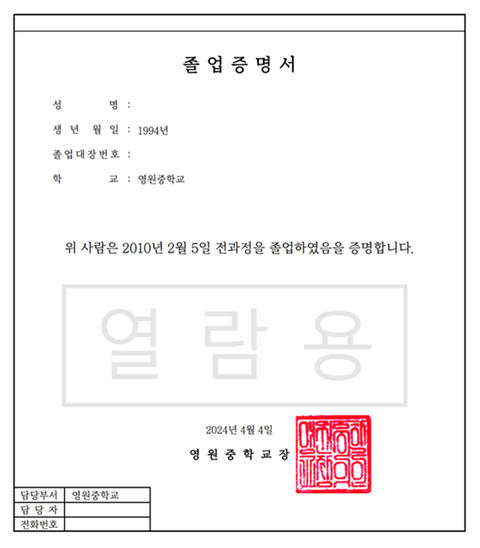 인증합니다, 담당자 전화번호 유출 방지 차원에서 지웠고 정부24에서 발급받은 졸업장입니다