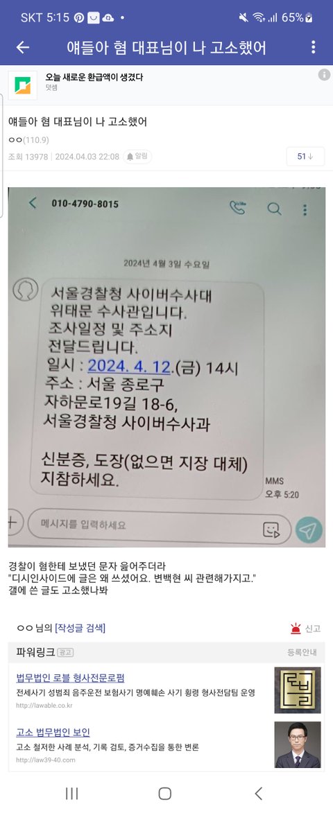 도대체 얼마나 심한 말들을 써댔길래 무려 고소를 당하는걸까. ㅎㄷㄷ
