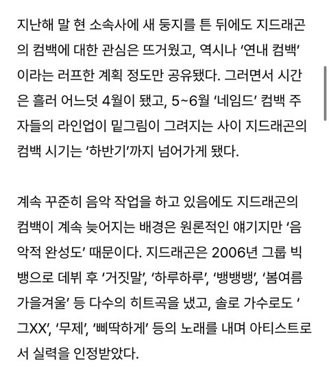 현재 예정 됐던 지디 컴백이 밀리는 이유