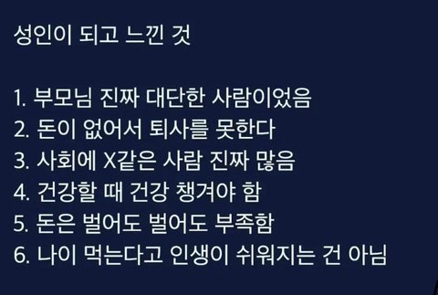 성인이 되고 느낀점 ㅇㄱㄹㅇ인듯