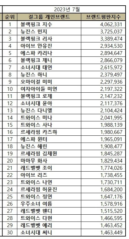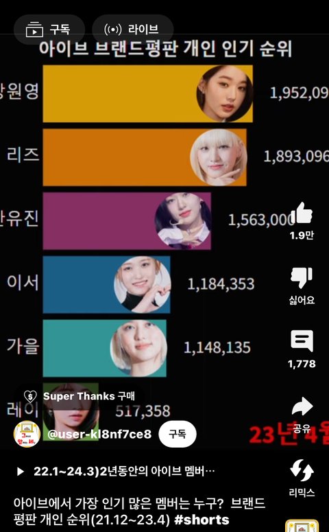 안유진 4위에 리즈 22위 장원영은 30위안에 안든적도 있음 걍 믿지마셈 지멋대로임