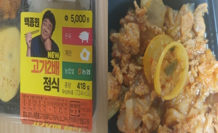 백종원 더본코리아 대표의 이름을 걸고 유명 편의점에서 판매 중인 도시락에서 플라스틱 기름 뚜껑이 나왔습니다.