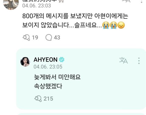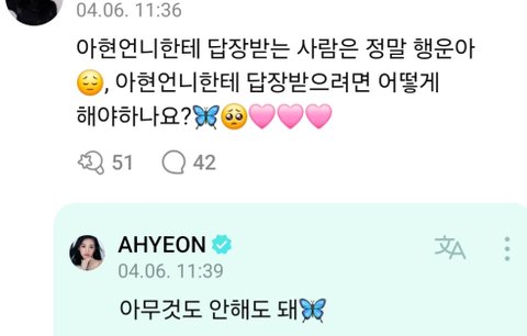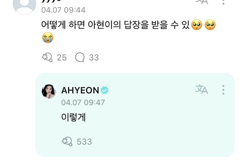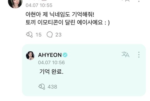 베몬 아현이 진심어린 답글