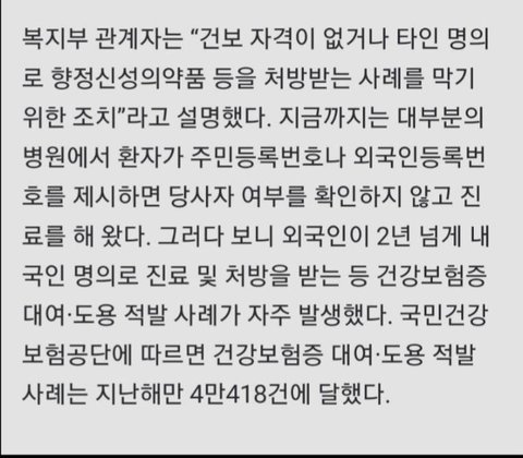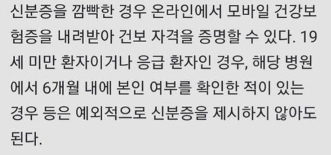 내달 20일 부터 신분증 및 건보증 제시 해야 진료 가능 하대여