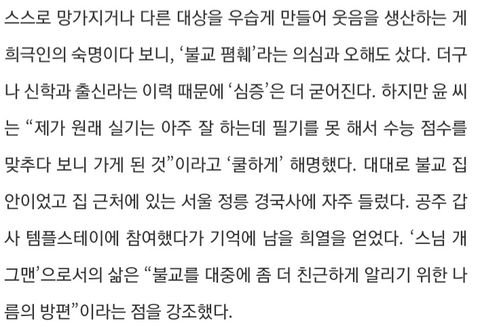 대대로 불교 집안인데 수능성적 때문이라고...............ㅜㅋㅋㅋㅋㅋㅋㅋ